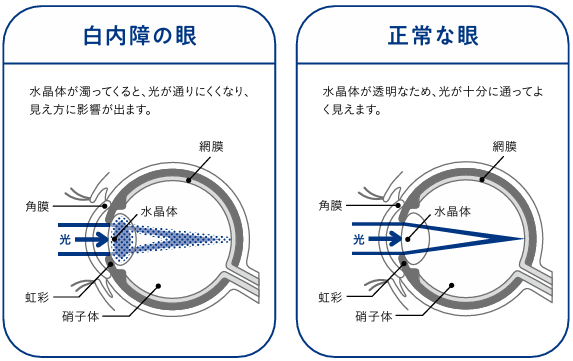 加齢などが原因で、水晶体が濁ってしまい、見え方に影響が出てしまった状態を、白内障といいます。
