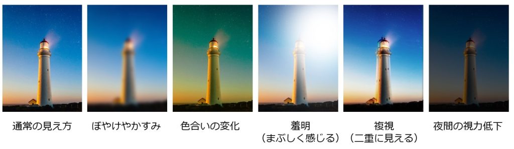 水晶体が濁っている部位、濁りの程度によってさまざまな症状が現れます